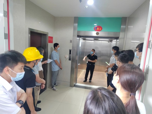 在救援过程中,电梯维保人员向现场观摩员工讲解了电梯工作原理、故障排除和救援步骤、被困人员在轿厢内的自救要点等,进一步加深现场观摩员工电梯安全知识。