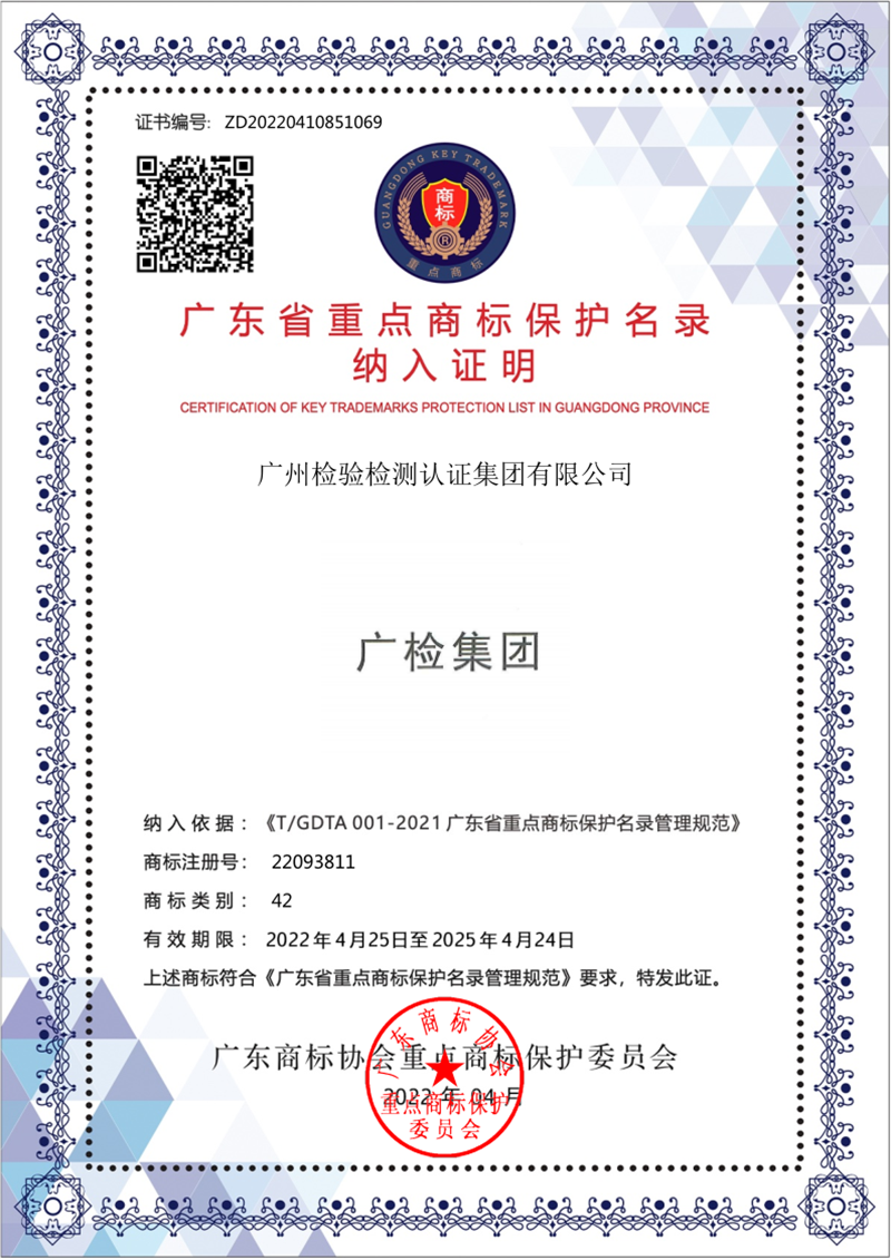 近期,广检集团商标入选广东省重点商标保护名录,市场知名度获得进一步的认可。