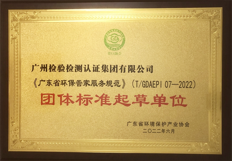 2022年7月6日,广东省环境保护产业协会召开《广东省环保管家服务规范》团体标准新闻发布会,广检集团广科院作为主要参与起草单位参加了《广东省环保管家服务规范》团体标准编制单位授牌仪式。